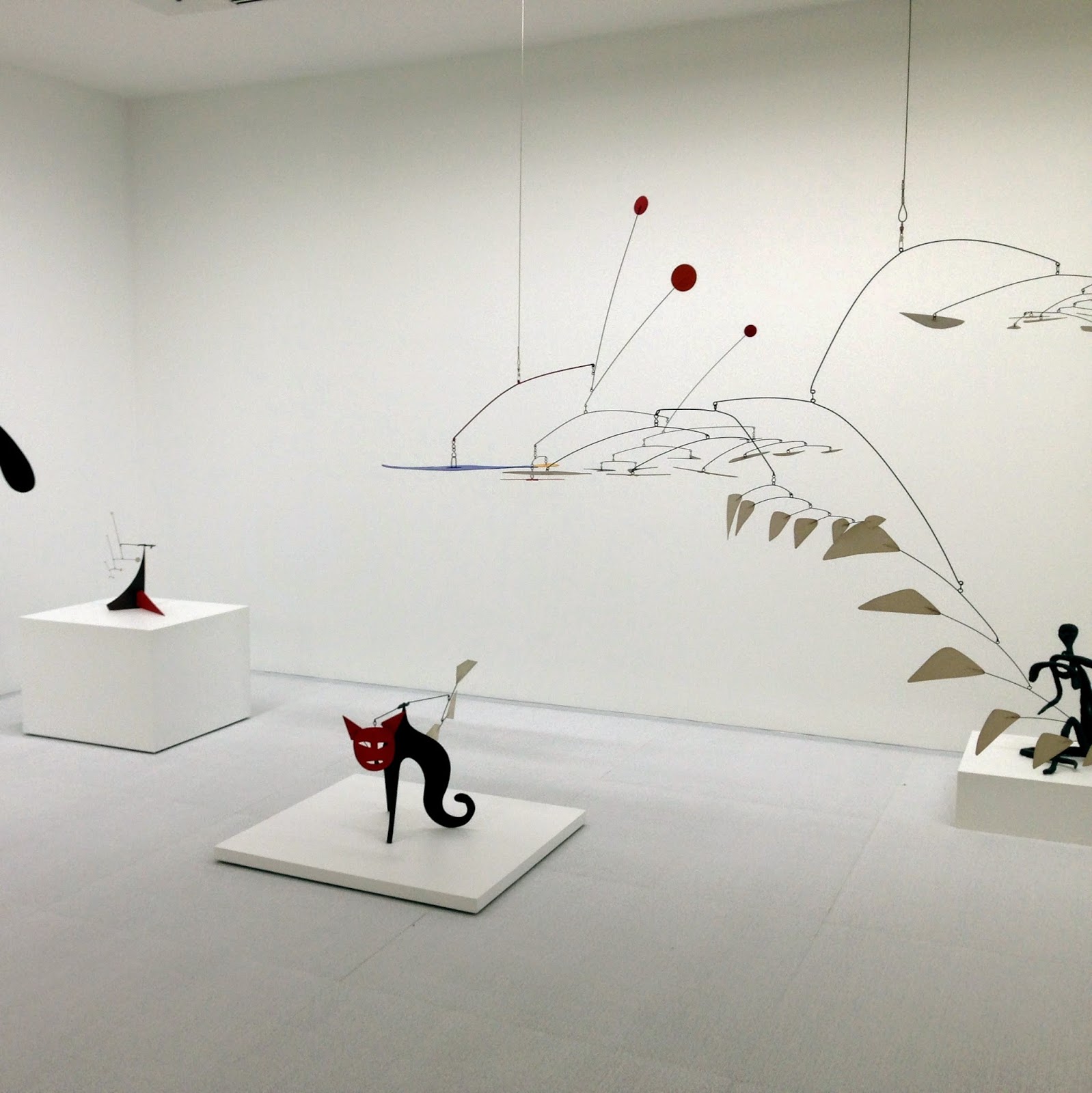 A permanent exhibit of Alexander Calder mobiles and sculptures is on display.