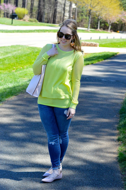 My pick this week is Rachel from A Blonde’s Moment and her pretty spring look! I love the contrast between the bright citron and soft blush!