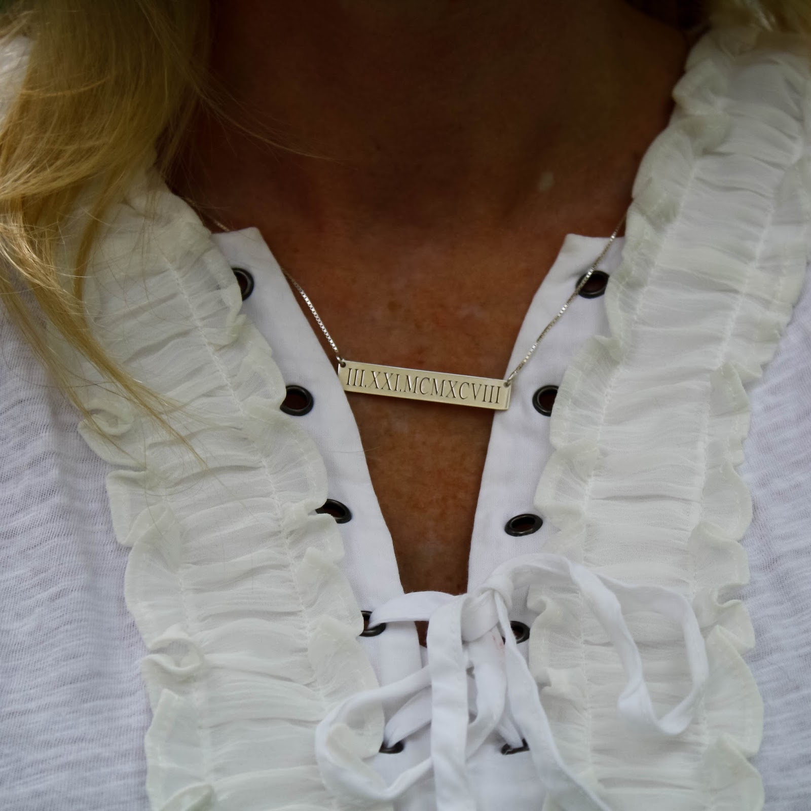 Roman Numeral Engraved Bar Necklace c/o oNecklace