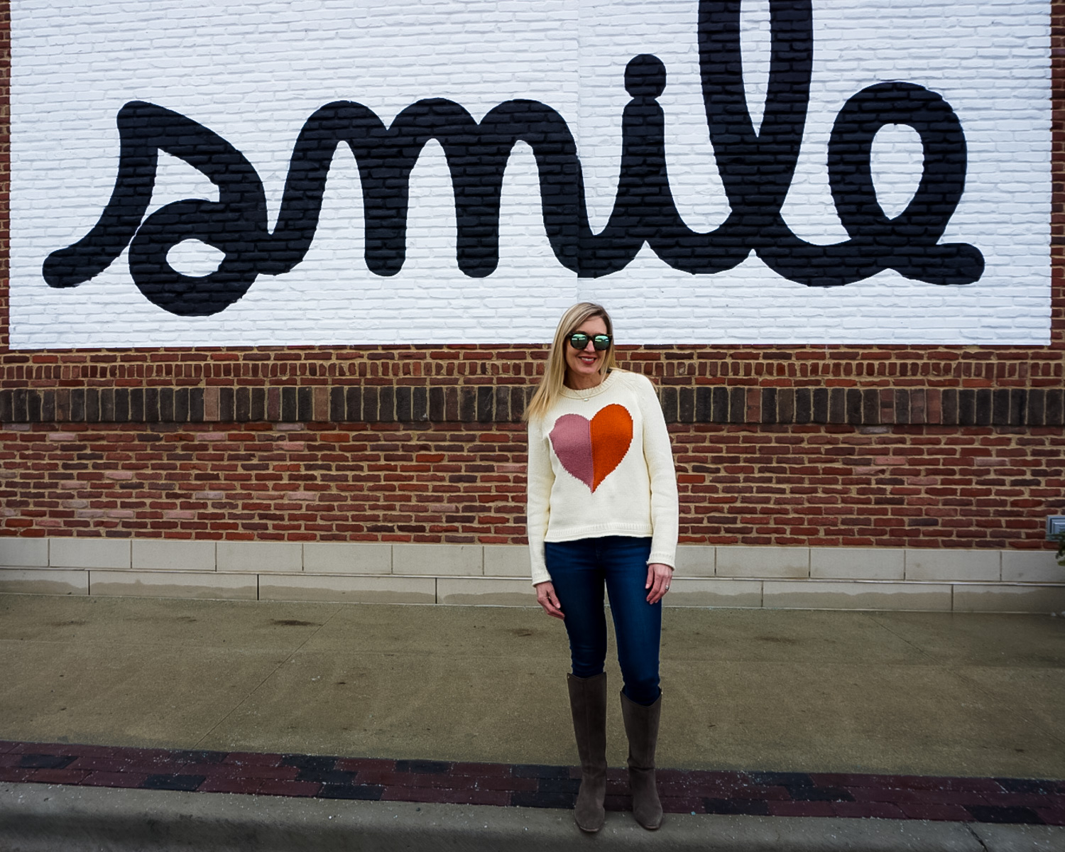 Hello friends! I thought this fun wall was appropriate for how I’m feeling this week! I’m smiling because last weekend when I took these photos it was 48 degrees and literally almost 100 degrees warmer than it was a few days before! It was so lovely being outside without bundling up and I’m sure our dog appreciated that she got longer and more leisurely walks!