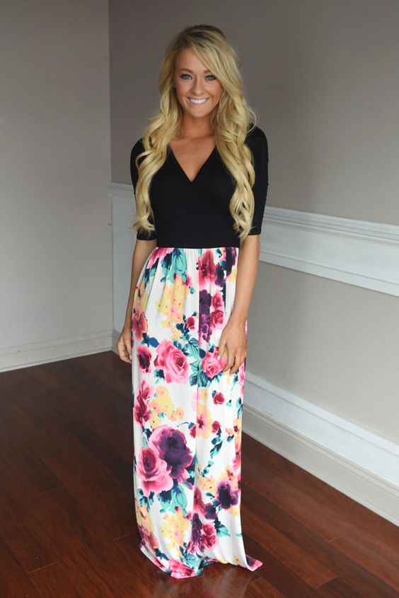 How cute is the outfit in the photo below? It popped up in my Pinterest feed recently and the floral maxi skirt reminded me of this floral top I got from the Pumps and Pushups Collection last summer.