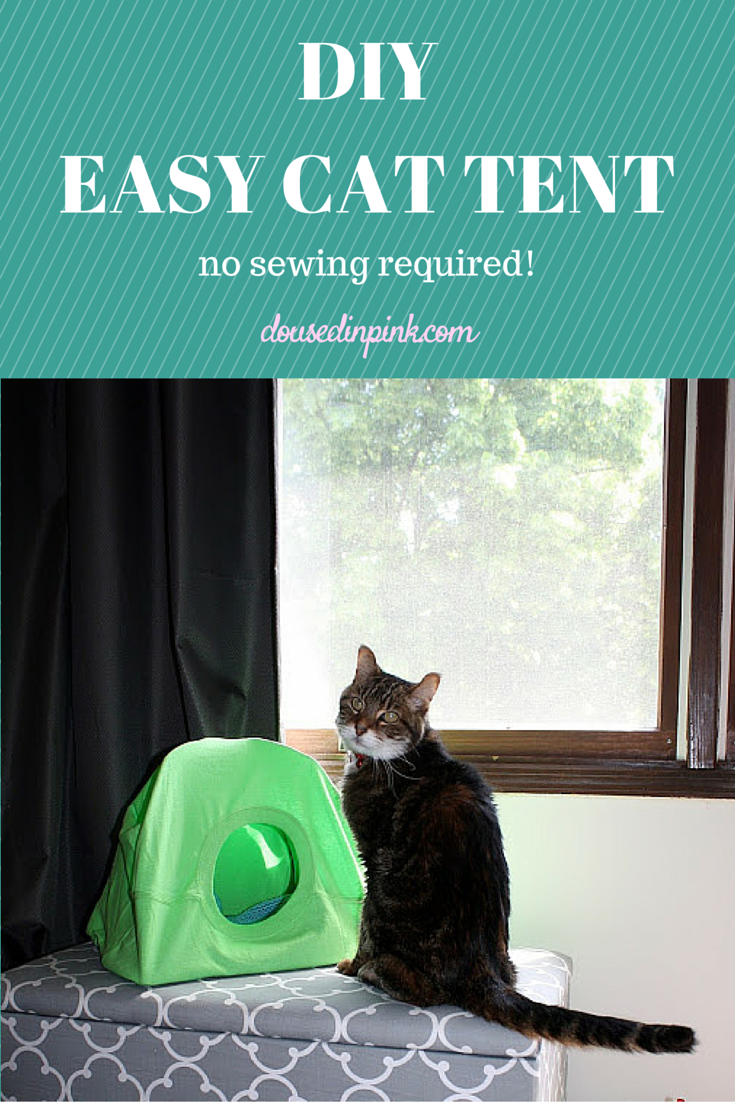 Zowie has had an adventurous life. For years he was both an indoor and outdoor cat. He would be outside all day and when we took our dog out of the last walk of the night he would find us, follow us home and come inside for the night. He now stays inside and spends his days napping in strange places like the bathroom sink or my scarf bin. He clearly needs his own space to sleep in and this no-sew cat tent is the perfect hideaway!