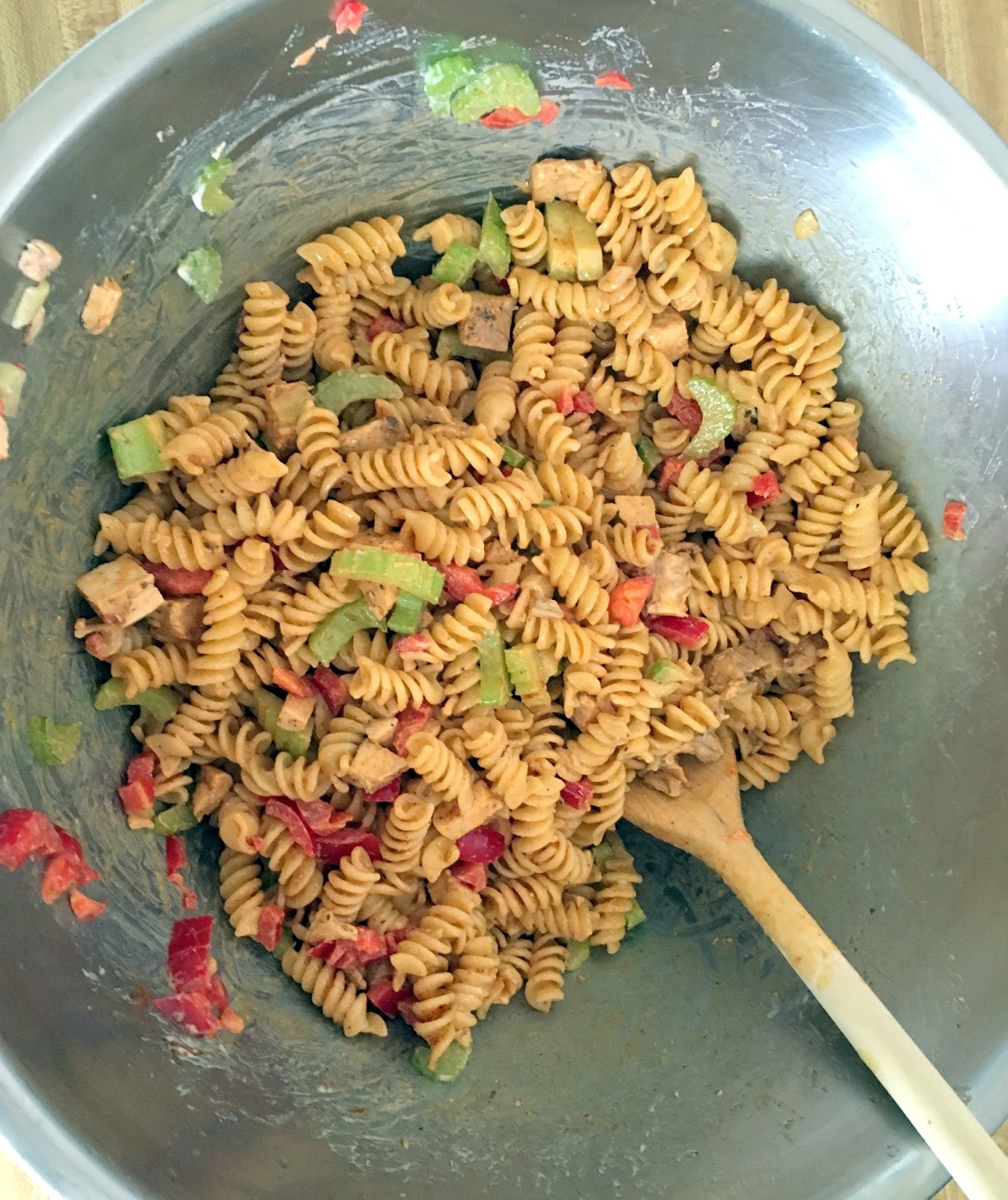 In a large bowl combine all of the ingredients, including the pasta, and mix well. Refrigerate until ready to serve. That’s it! This recipe has also been a hit for potlucks and as a side for a cookouts!