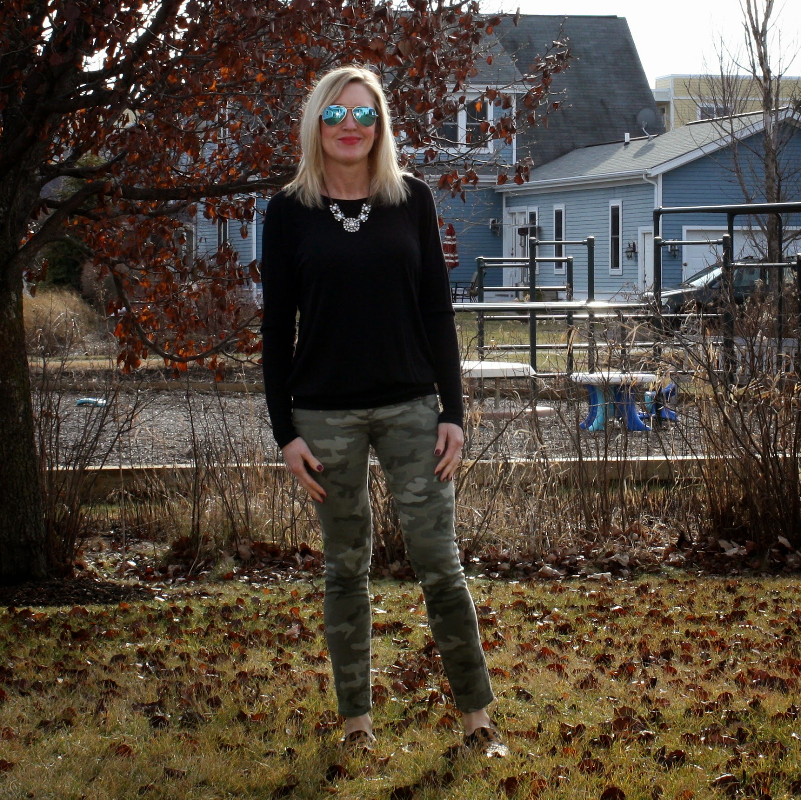 The camouflage print will continue to be a hit this spring. You’ll see it on pants, tops and jackets. I consider my camouflage pants a neutral and the more I wear them, the more I see how versatile they are. They go with virtually everything and add a fun element to your outfit. If you are still hesitant to embrace this trend or just need some style inspiration, today I’m showing you three ways to wear your camo pants.