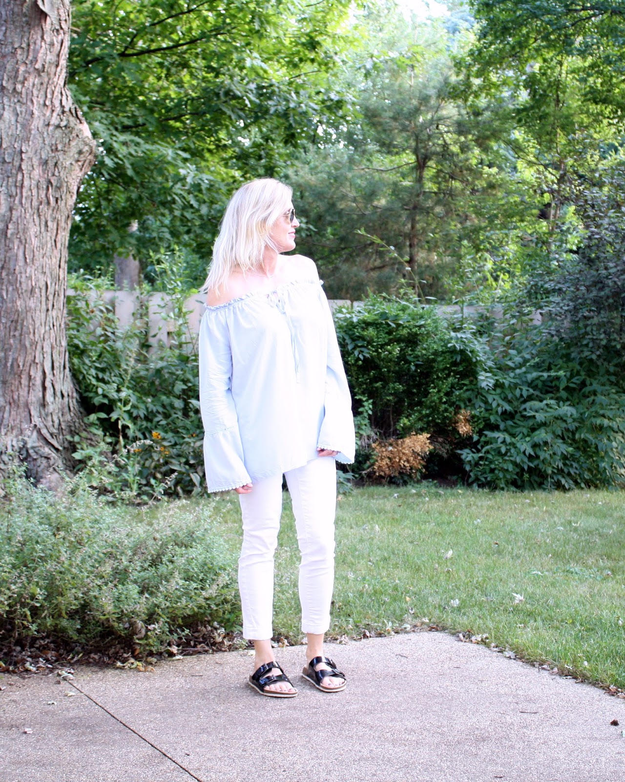 Yesterday, I shared a few of my fall favorites from Zaful. If you missed it, click HERE! I asked you to guess which piece I picked out…did you guess right? I’ve loved the off the shoulder trend from the start but am probably the last person on the planet to finally add one to my wardrobe. This chambray off the shoulder top top caught my eye instantly and I knew it was the perfect fall transition piece! I can’t get enough of the bell sleeves and the pompom edging gives it a fun and flirty vibe! For reference I’m wearing a size medium.