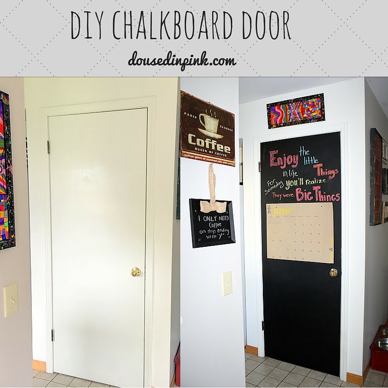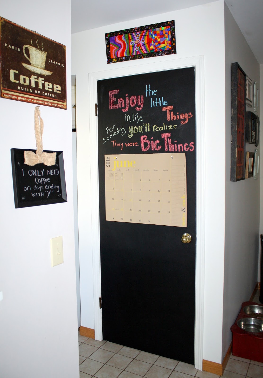 I don’t like the doors in our home. But, when you rent there’s not much that you are able to change and we don’t want to invest too much into it either. While I would love to swap out our plain doors for two panel, that’s out of the question. My Mom has a chalkboard door leading from her kitchen to garage and I decided that I wanted one too. The door leading from our kitchen to the basement was the perfect door to paint.It would add some fun to our kitchen and would be a great place to write grocery lists, meal plans, to-do’s and inspirational quotes.