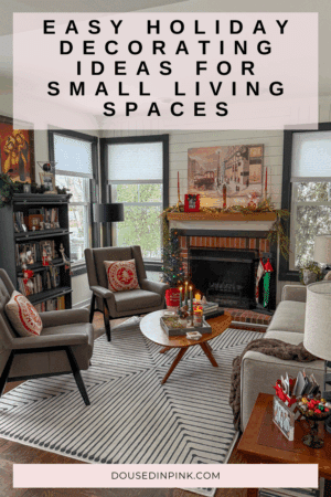 The sitting room (formally our family room) is always my favorite place to decorate because it transforms so easily. It’s a smaller space, but it has a great fireplace, and the oversized windows let in lots of natural light. This is where Christmas decorating ideas for small homes really shine — because you don’t need a lot to make it feel festive.