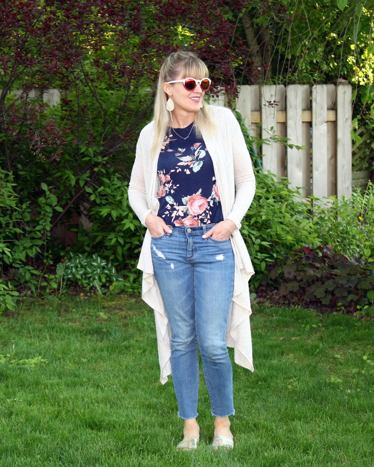 Winkwood Desert Rose Sunglasses | Tee – Mindy Mae’s Market | Gap Jeans | Duster (similar)