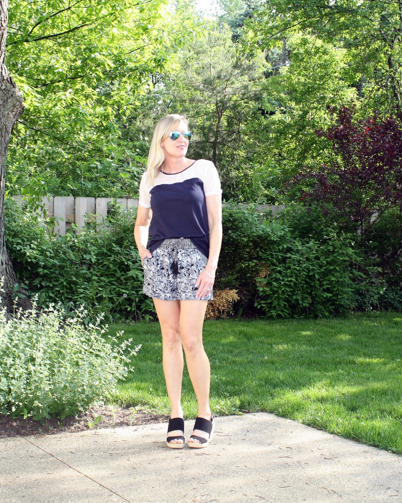 Printed Shorts (option), love these | Lace Block Tee (option), striped option