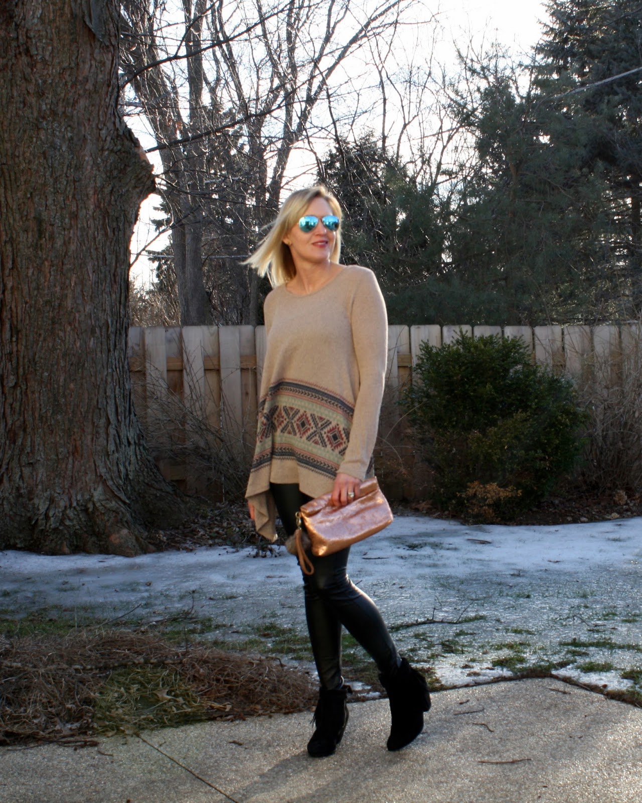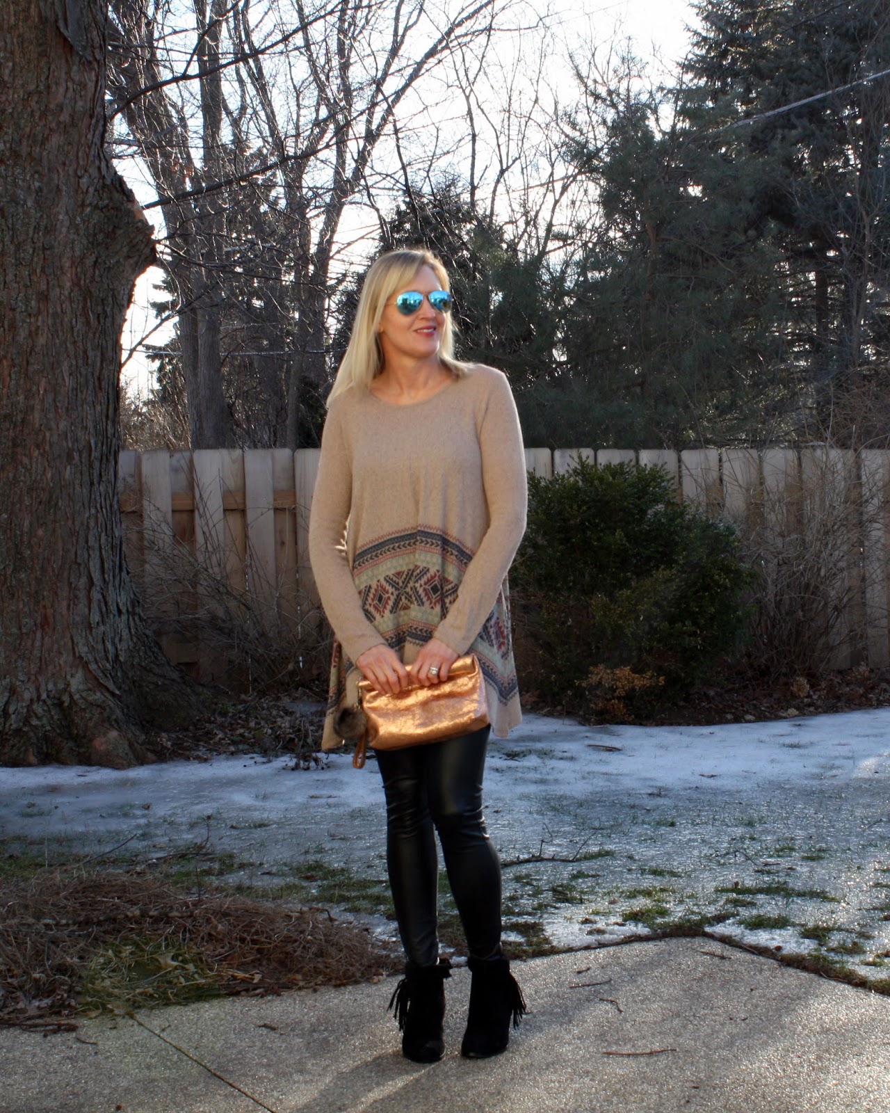Creating a look for girls night out or date night was easier than I expected. I swapped out my comfy leggings for leather, added fringe booties and the only other thing I needed was a fun clutch to carry my essentials!
