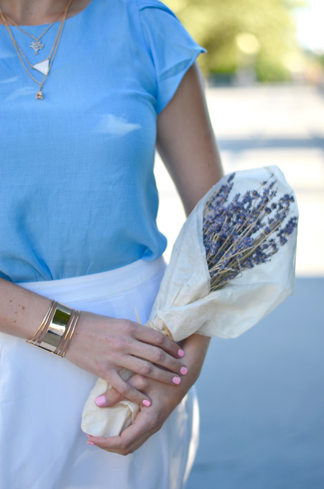 Top c/o // Similar Skirt (& a cheap version here) // Necklace c/o // Shoes (my favorites!) // Similar Bracelet (also I adore this one) // Nail Polish