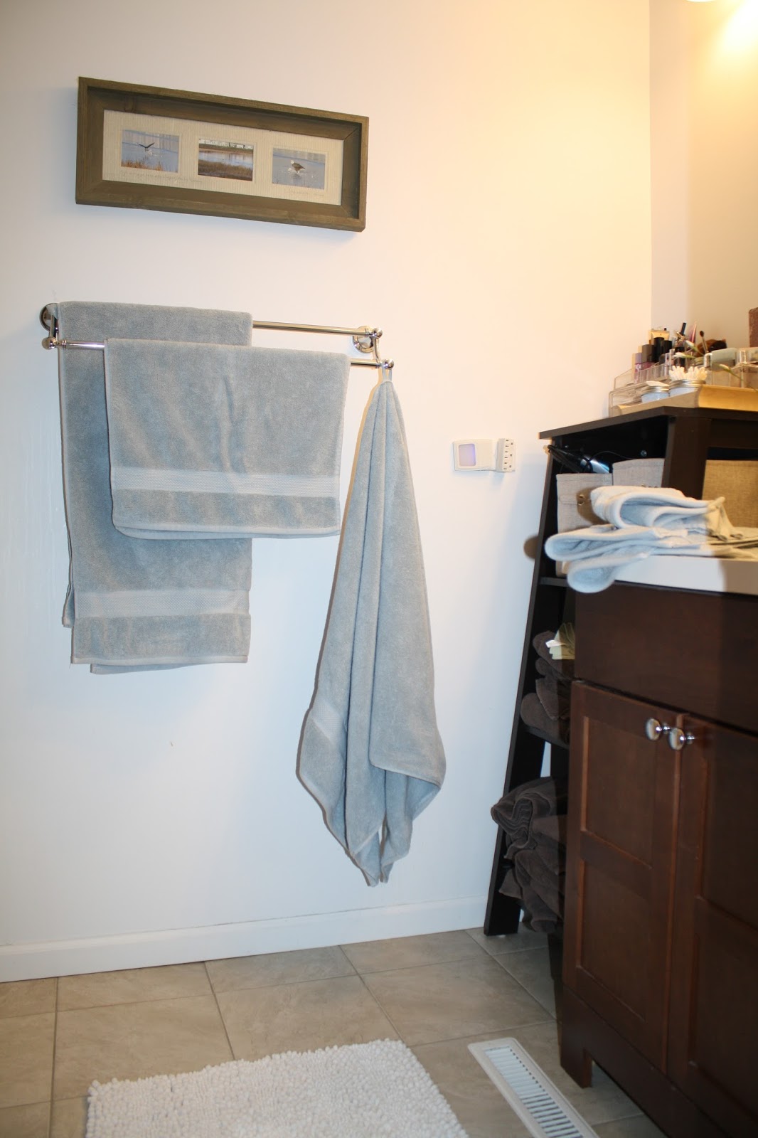 Shopping your home is a great and free way to make things seem new again! The white bath rug was an extra stored away, the art came from my office and the farmhouse tiered basket was in the entryway. In less than an hour, my bathroom was revived!